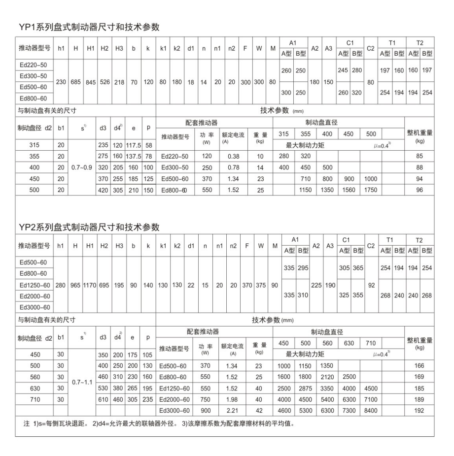 電力液壓盤式制動器符合DIN15435標(biāo)準(zhǔn)和JB/T7020-2006標(biāo)準(zhǔn)。配套符合DIN15430標(biāo)準(zhǔn)的Ed系列推動器。