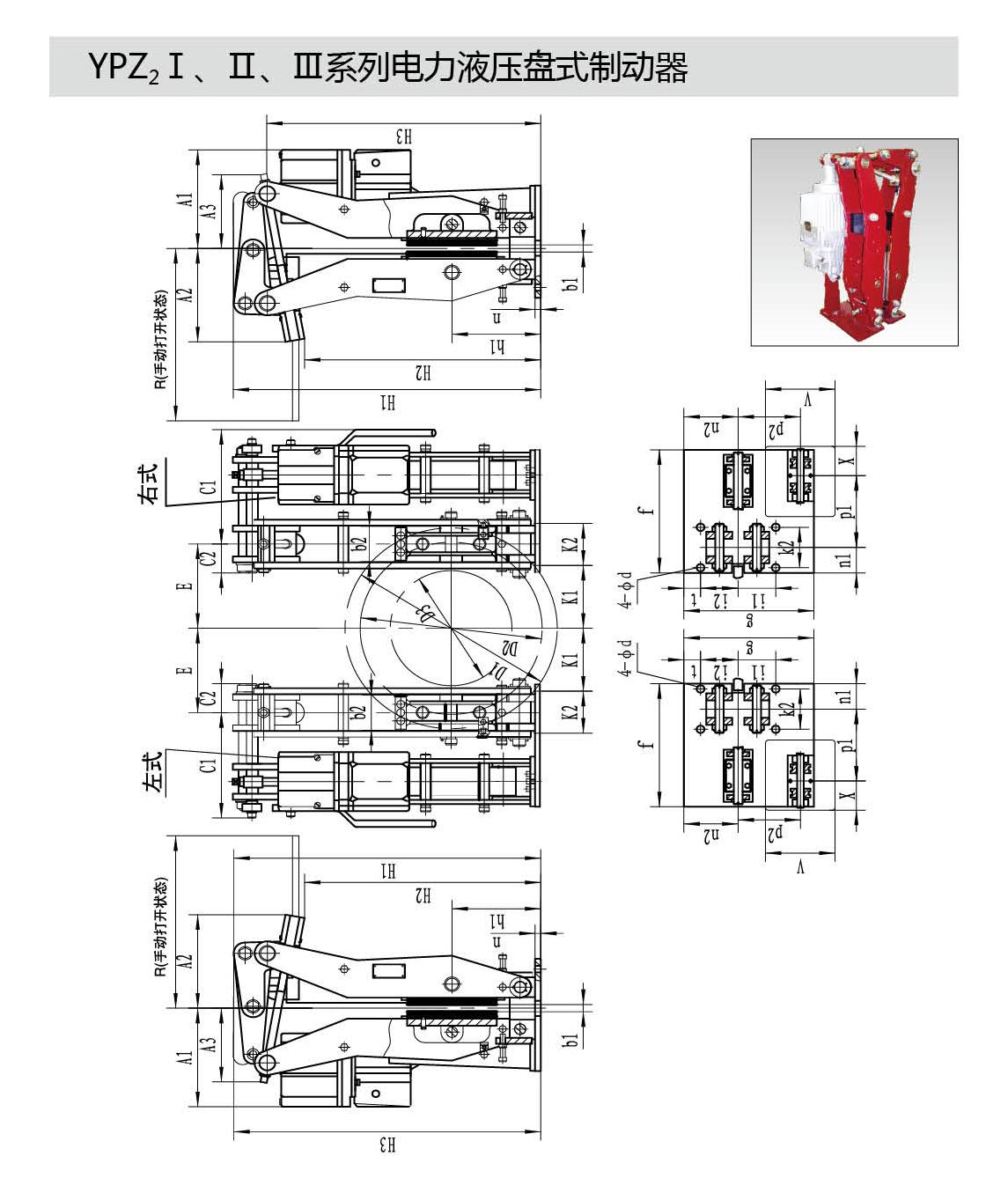 YPZ2ⅠⅡⅢ系列電力液壓盤式制動器是一種高性能、多功能的先進產(chǎn)品。由于其具有瓦塊退距自動均等,襯墊磨損自動補償?shù)认冗M功能,使用過程中維護非常便捷。通過增設各種限位開關,可給主機PLC提供所需要的聯(lián)鎖保護信號。非常適合各種現(xiàn)代的大型裝卸機械、起重運輸機械、冶金設備、礦山設備及工程機械中各種機構的減速和維持(停車)制動。